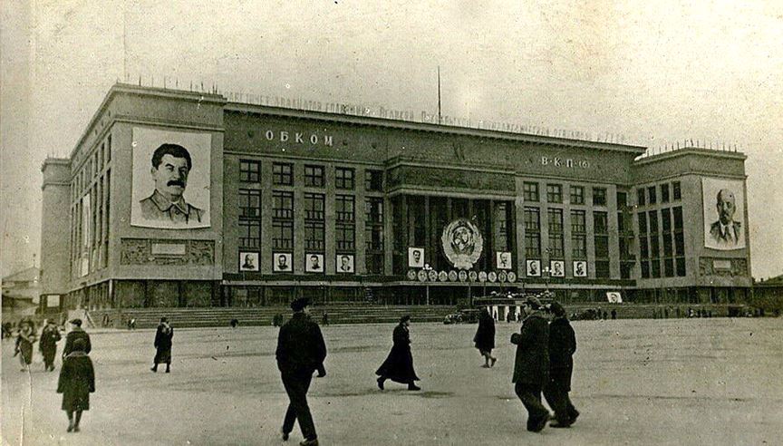 Здание Воронежского обкома ВКП(б).. Воронеж. Конец 1930-х гг. Здание обкома было взорвано фашистами в январе 1943 г. Сейчас на этом месте находится Никитинская библиотека.