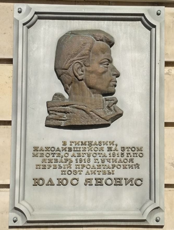 В 1985 году на здании театра кукол «Шут» (проспект Революции, 50) была установлена мемориальная доска в память о том, что здесь учился Юлюс Янонис (см. фото выше).